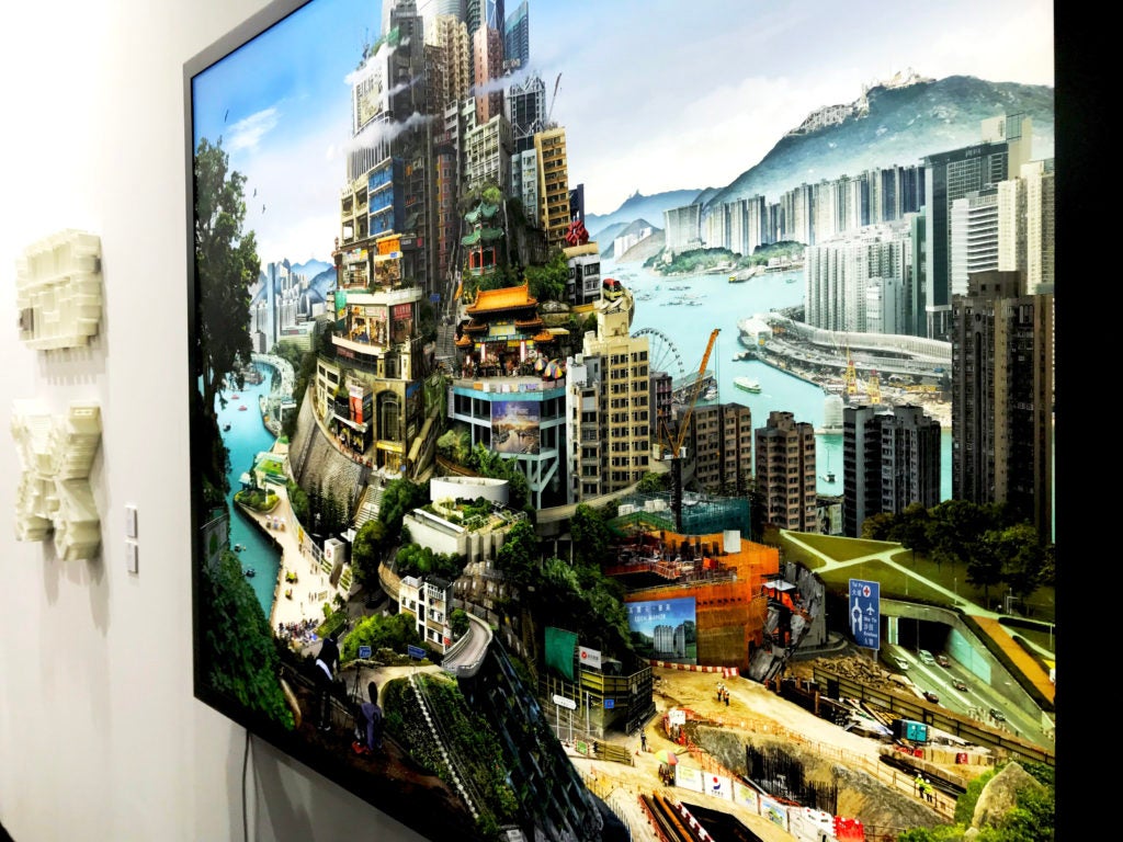 デジタル表現を使った写真作品で、香港島をバベルの塔にオマージュした作品
