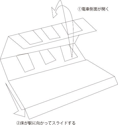 (3)では渡辺の最適解としまして、車両の片側が開き、床がスライドして駅に直結するというのはいかがでしょうか。
