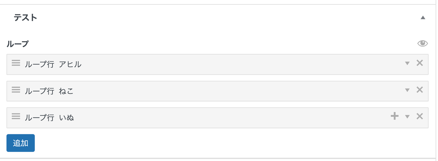 これで記事編集画面を開くと、ループ行にテキストが表示されているはず。